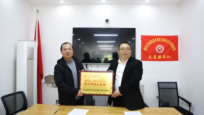 3月22日上午,外国语学院与通川区东城街道北翎社区“童声英语”校地共建实践基地挂牌仪式在北翎社区新时代文明实践站举行。外国语学院党委副书记董怀军、社区工作人员、师生志愿者、辖区青少年及家长代表齐聚一堂,共同见证这一校社合作的重要时刻。