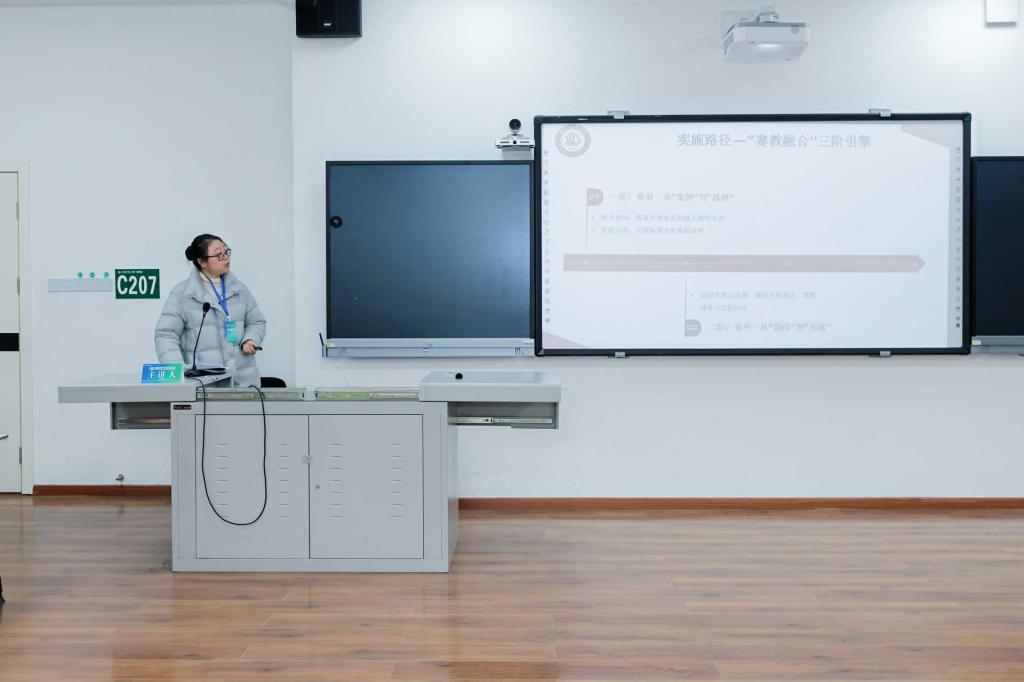 下午,在平行论坛中,与会代表围绕新文科背景下商务英语专业建设、课程改革、产教融合及师资培养等议题进行深入交流与讨论。何微分享了我院在赛教融合方面的实践探索和宝贵经验,作了题为“产教融合视域下商务英语‘以赛促学’模式的构建和反思”的主题发言,引发了与会者广泛共鸣和热烈讨论。随后,李显文作为下一届承办方代表发表了热情洋溢的讲话,诚挚邀请与会嘉宾明年相聚达州。