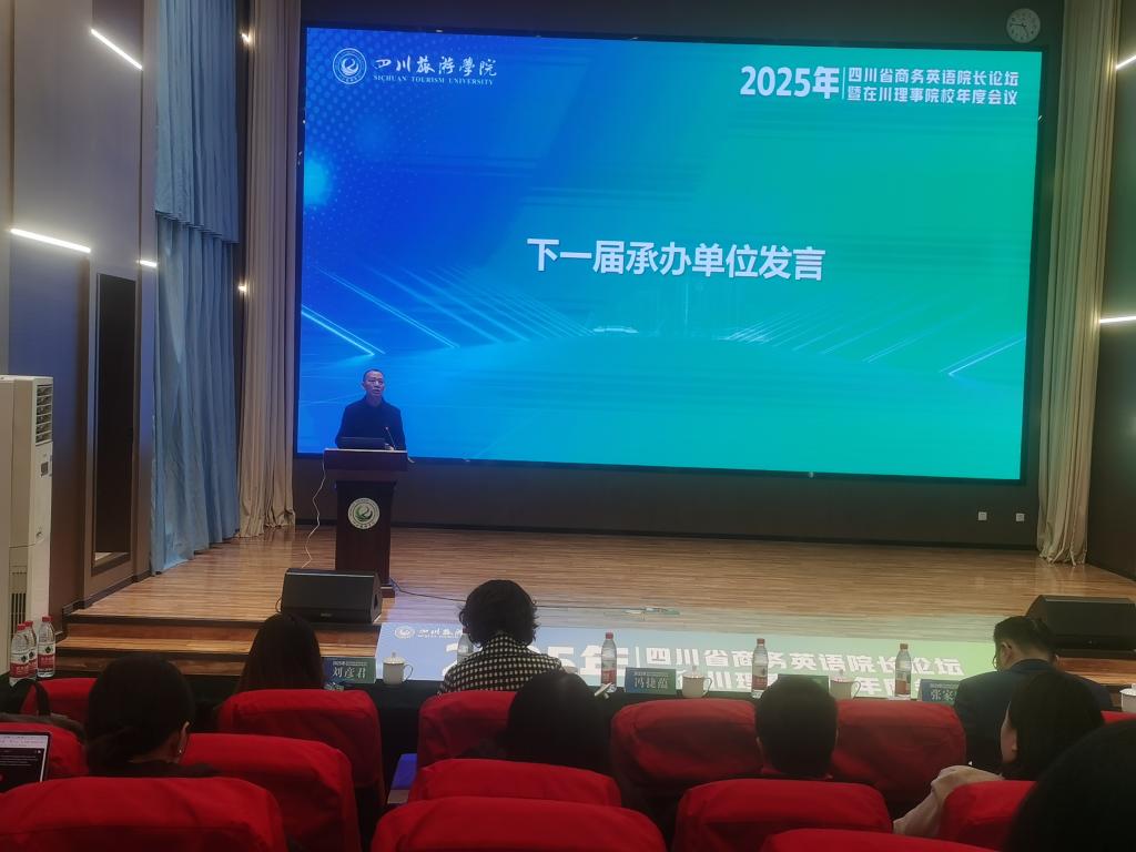 12月27日,由中国对外贸易经济合作企业协会国际商务与语言服务工作委员会主办,四川旅游学院承办的2025年四川省商务英语院长论坛暨在川理事院校年度会议在四川旅游学院举行。本次会议聚焦商务英语教育改革与创新发展,来自省内外高校及行业组织的专家、学者参加会议。学院副院长李显文教授,商务英语教研室主任宋宗伟和何微老师参会。